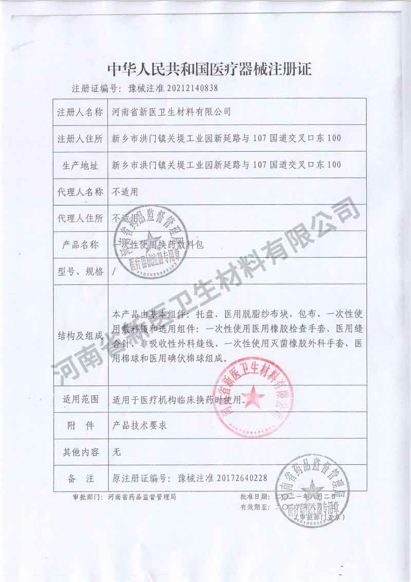 河南省新醫(yī)衛(wèi)生材料有限公司簡(jiǎn)介 南省新醫(yī)衛(wèi)生材料有限公司(原新鄉(xiāng)醫(yī)學(xué)院衛(wèi)生材料總廠(chǎng)),公司秉承誠(chéng)信、務(wù)實(shí)、的企業(yè)精神,追求卓越的經(jīng)營(yíng)理念,打造了“予新衛(wèi)”醫(yī)用耗材品牌,深得各地客商和醫(yī)護(hù)人員的信任。 我公司是全國(guó)較早生產(chǎn)麻醉包系列和醫(yī)用手套系列的廠(chǎng)家,擁有二十多個(gè)產(chǎn)品注冊(cè)證,開(kāi)發(fā)中的新產(chǎn)品近十個(gè)。在精誠(chéng)健康事業(yè),精心打造品牌,創(chuàng)造衛(wèi)材精品的思想指導(dǎo)下,服......