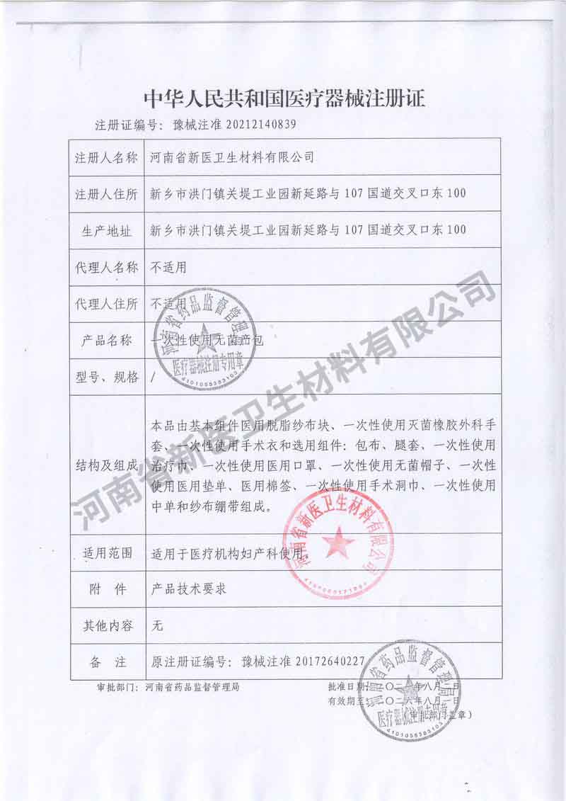 地 址:河南省新鄉(xiāng)市洪門鎮(zhèn)關(guān)堤工業(yè)園新延路與107國道交叉口東100米 手 機(jī):13849384483 任經(jīng)理 電 話:0373-5789518河南麻醉包|河南穿刺包|河南醫(yī)用護(hù)理包|河南導(dǎo)尿包|河南醫(yī)用墊單|河南醫(yī)療器械廠家|醫(yī)療包廠家|河南省新醫(yī)衛(wèi)生材料有限公司 版權(quán)所有 備案號(hào):