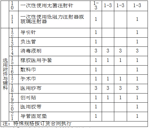【產(chǎn)品性能】一、物理性能:1、一次性使用麻醉用針應(yīng)符合YY0321.2-2009的相關(guān)規(guī)定。2、一次性使用麻醉用過濾器應(yīng)符合YY0321.3的相關(guān)規(guī)定。3、一次性使用硬膜外麻醉導(dǎo)管及接頭應(yīng)符合YY0321.1-2009中5.3.1、5.3.2、5.3.3、5.3.4、5.3.5、5.3.6、5.3.7、5.3.8、5.3.9、5.3.10、5.3.11的要求.4、一次性使用無菌注射器應(yīng)符合GB15810-2001的要求。5、一次性使用無菌注射針應(yīng)符合GB15811-2001的要求。6、玻璃注射器應(yīng)符合YY1001.1-2004的要求。7、橡膠醫(yī)用手套應(yīng)符合GB7543-2006的要求。8、手術(shù)巾、敷料巾應(yīng)符合FZ/T64005的要求。9、醫(yī)用紗布應(yīng)符合YY0331-2006的要求。10、醫(yī)用膠帶應(yīng)符合YY0148-2006的要求。11、若采用環(huán)氧乙烷滅菌,每包內(nèi)與藥液接觸的器械總殘留量應(yīng)不大于0.5mg,包內(nèi)的輔料其殘留量應(yīng)≤250μg/g。12、產(chǎn)品應(yīng)無菌,13、一次性使用麻醉用針細(xì)菌內(nèi)毒素限量每件不超過2.15EU,與藥液接觸的器械細(xì)菌內(nèi)毒素限量每件不超過20EU。